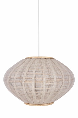 Tropisk grönska, ett sus genom palmbladen och vågorna som slår upp och lägger sig som ett täcke över den milslånga vita sandstranden. Där vid en liten servering, bland bambumöbler och bastparasoll hänger denna dekorativa lampa. Lampan är tillverkad av naturfärgad rotting och offwhite linnetyg. Obs! Skärmen kan hängas utomhus, men notera att väder och vind kan naturligt förändra utseendet på naturmaterial.