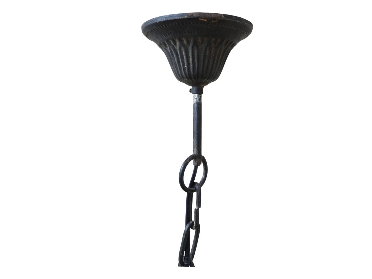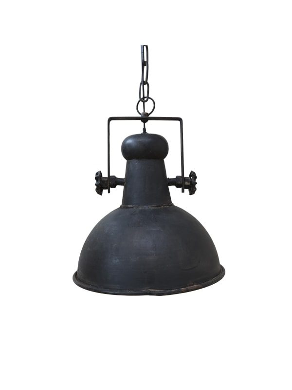 Läcker taklampa i industriell look med svartskavd finish. En industrilampa som passar in i många hem, lika fint i torpet på landet som i den moderna lägenheten i stan. Upphängning i kedja med svart elkabel och dekorerad kåpa.