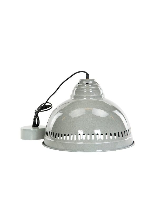Taklampa i fransk industristil med gråemaljerad skärm. En taklampa som passar in i många hem, lika fint i torpet på landet som i den moderna lägenheten i stan. Svart elkabel med E27-sockel.